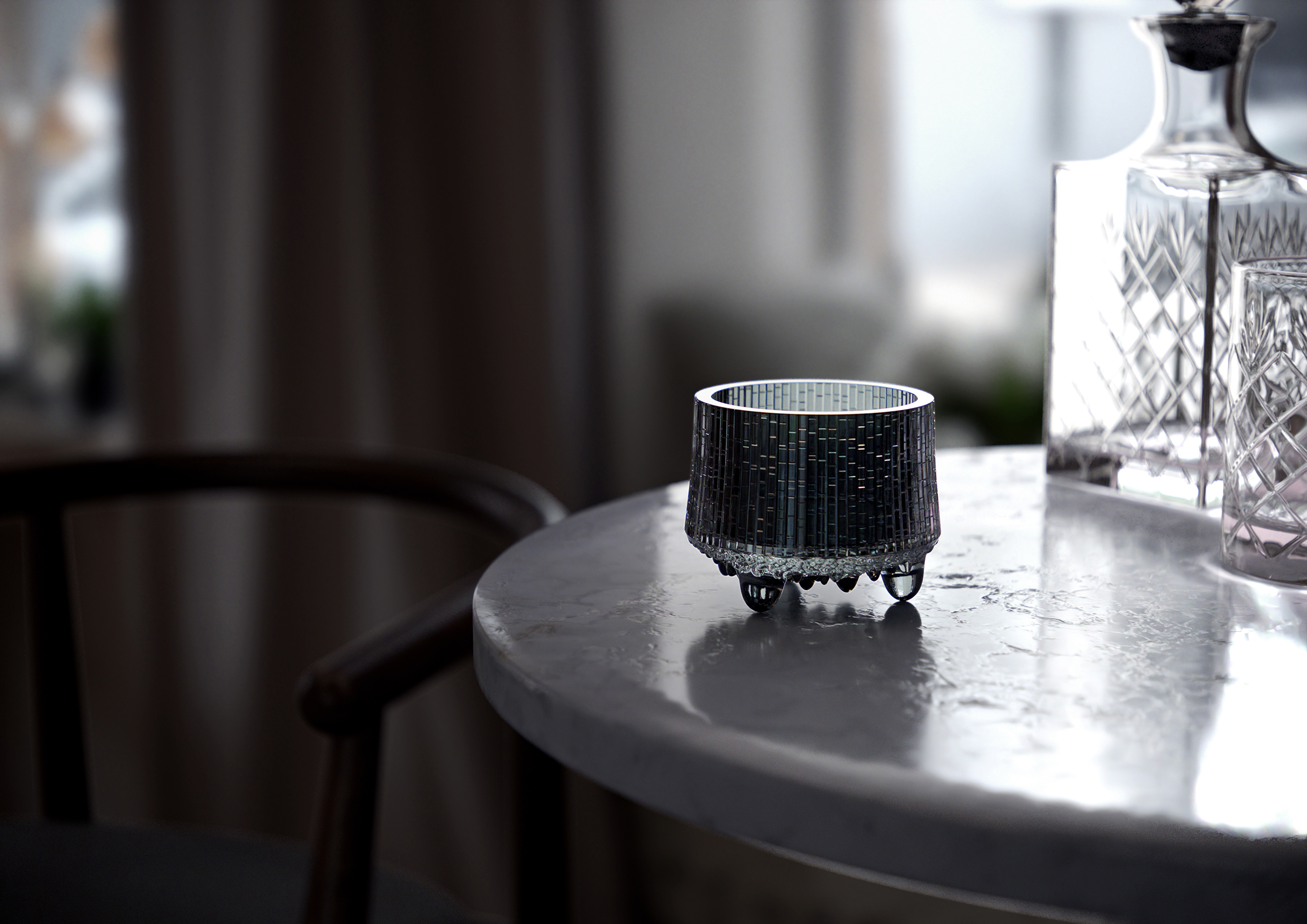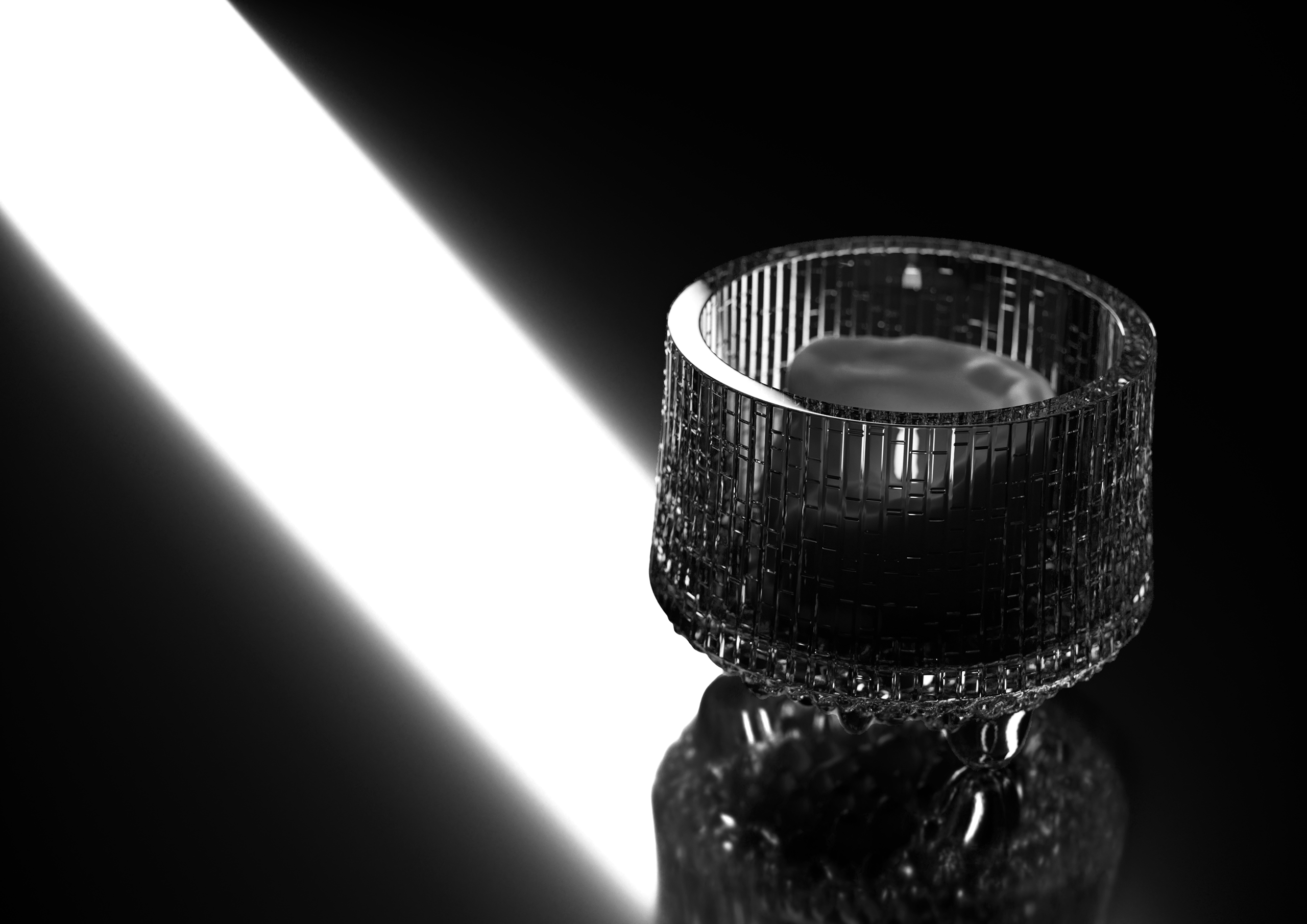 Tapio Wirkkala’s Ultima Thule series abstracts the fleeting boundary where northern ice and snow begin to melt, capturing this moment through the plasticity of glass and the behavior of light within it.Its defining character lies in the translation of natural irregularities—uneven relief, melting rhythms, and dripping formations—into an industrially reproducible form. As such, the series stands as a quintessential example of the Nordic design ethos rooted in close observation of nature.This project was created for Product Visualization, aiming to maximize the inherent appeal of the object while balancing dimensional accuracy with visual realism and impact.